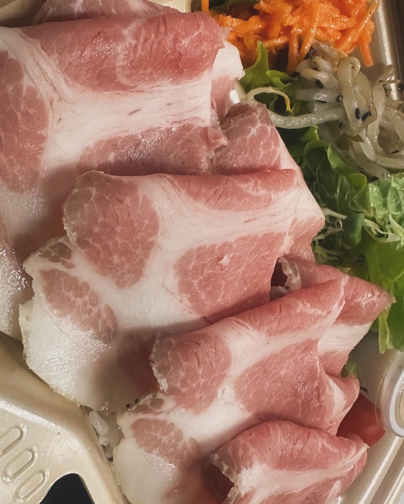 塩漬けにした豚肉を低温のラードで火入れした豚肉のステーキを相盛りにした【ましまし弁当】がとてもおすすめです😊✨