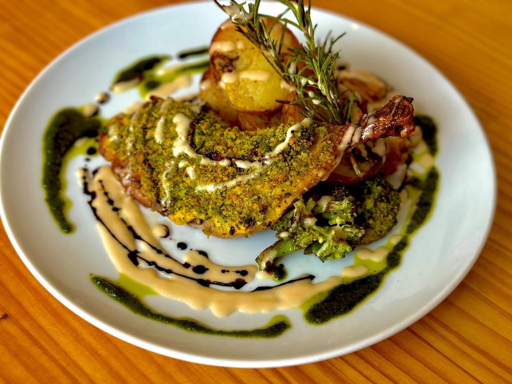 春の息吹を感じる新メニュー🌸 ステーキの極みを堪能しませんか?当ステーキハウスでしか味わえない季節限定の逸品をご用意しております🍽✨ 骨付き鶏腿肉の繊細なコンフィ、香ばしい香草パン粉の焼成、春爛漫を映すヴィネグレットソースのさわやかな酸味。スパイスの効いたほろほろとした鶏肉の旨味と、にんにく・エシャロットの風味豊かな香草パンが、春の到来を食卓に運びます🌿