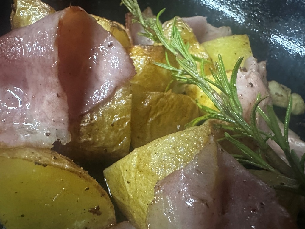 ローズマリー、にんにく、ベーコンの旨味がしみこんだほくほく男爵いもと