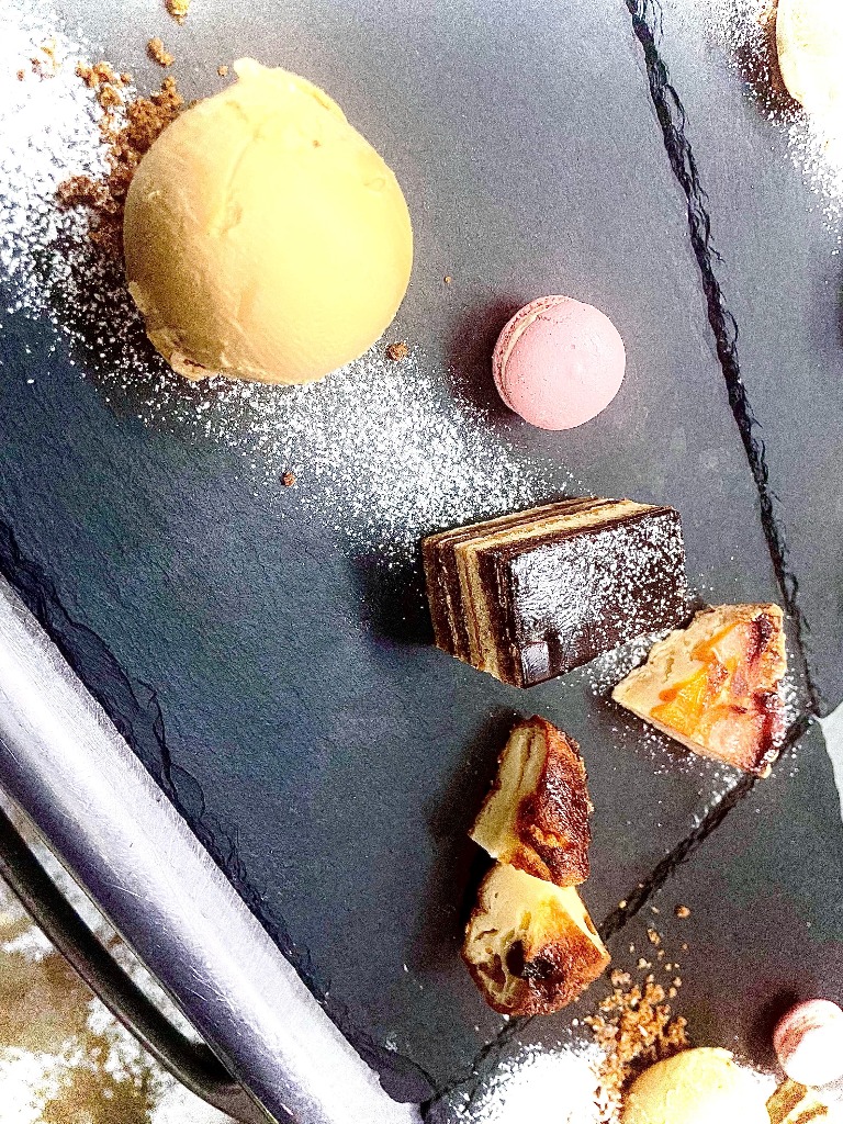 白子ムニエル、コンフィ、人参ムース、もちろん肉も、